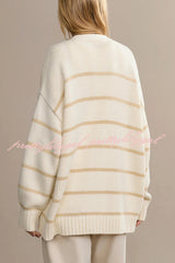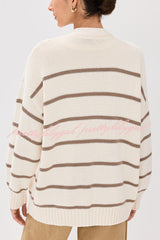 Striped Loose V-neck Long-sleeved Casual Knit Cardigan