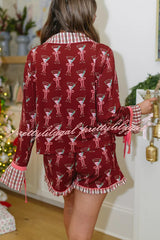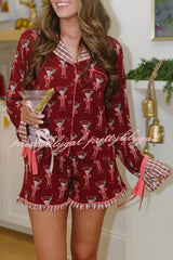 Tini Time Unique Print Tie-up Sleeve Pocket Shirt and Elastic Waist Shorts Pajama Set
