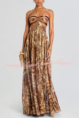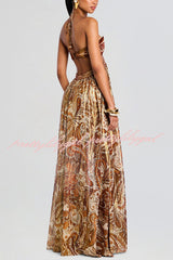 - This chiffon dress features an off-the-shoulder design that beautifully accentuates the shoulder line. The open back and side cutouts create a stylish silhouette, while the paisley print adds a touch of modern bohemian flair. The concealed back zipper and hook-and-eye closure ensure both comfort and style, making it ideal for warm weather activities and vacations.Our distinctive clothing will add instant style to your wardrobe.