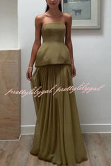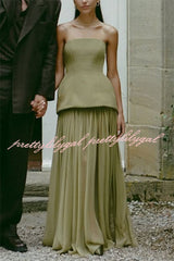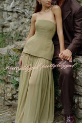 Classic Attendance Structure Strapless Tank and Pleated Tulle High Rise Maxi Skirt Set
