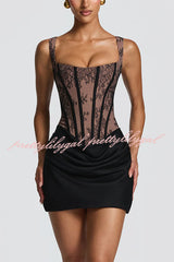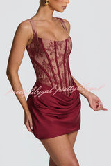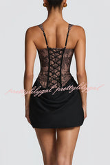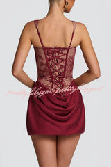 Cornelia Floral Lace Contrast Structural Detail Back Lace-up Satin Hem Mini Dress