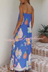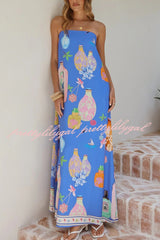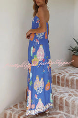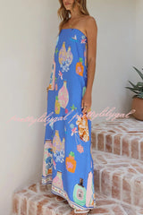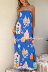 Linen Blend Perfume Bottle Print Sleeveless Off-shoulder Casual Pocket Vacation Maxi Dress
