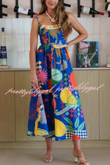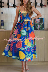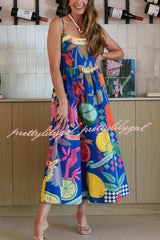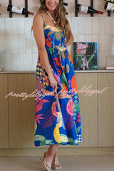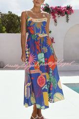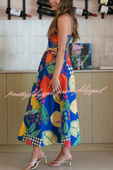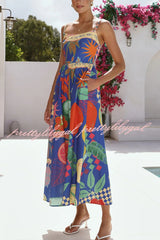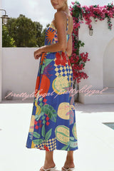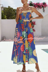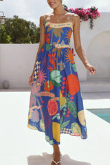 Linen Blend Unique Print Square Neck Pocket Casual Vacation Maxi Dress