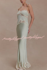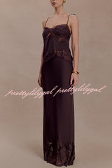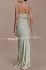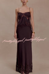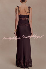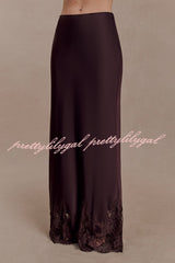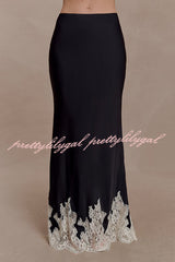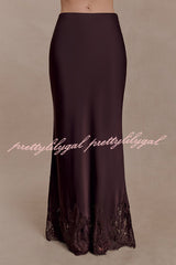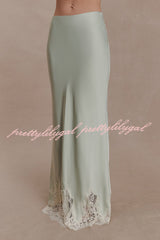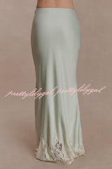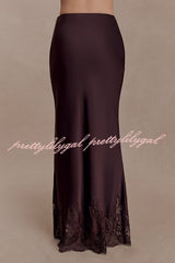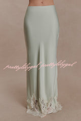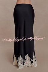 - The NINA dress features a lustrous satin fabric and a lace-trimmed hem that adds a touch of romance, creating a graceful movement with every step. It has a concealed side zipper for a seamless and flattering fit. Perfectly blending timeless elegance with modern comfort, it exudes exceptional charm whether worn as a set or paired with other sophisticated pieces.