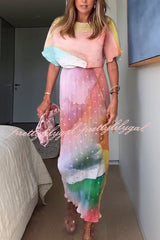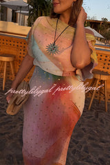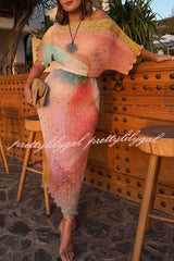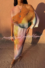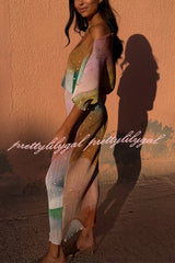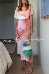 - This bestselling piece, designed in-house, features a metallic print where gold brushstrokes shimmer in the sunlight, creating a chic abstract pattern. The fitted skirt paired with a slightly flared top perfectly accentuates your figure for vacations, parties, or summer weddings.Our distinctive clothing will add instant style to your wardrobe.