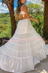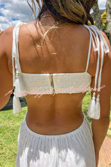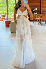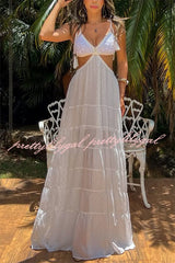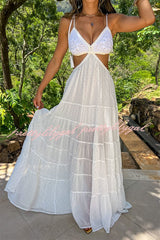 Soleil Crochet Tassel Shoulder Strap Cutout Waist Chiffon Polka Dot Vacation Maxi Dress