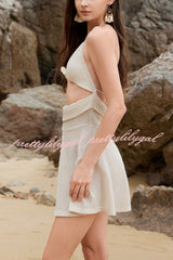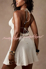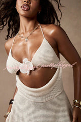 Solid Color Halter Neck Sleeveless Hollow-out Slim-fit Knitted Cover-up Mini Dress