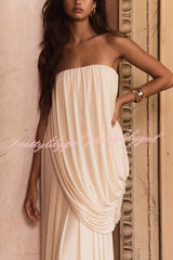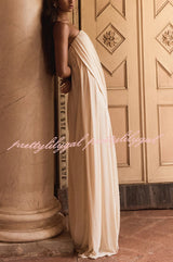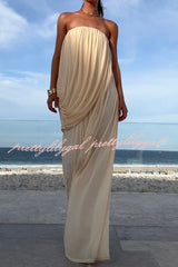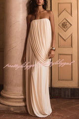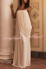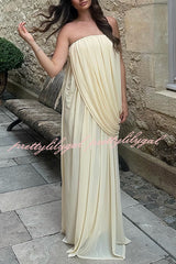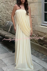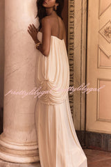 Solid Color Sleeveless Off-shoulder Draped Loose-fitting Holiday Maxi Dress