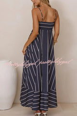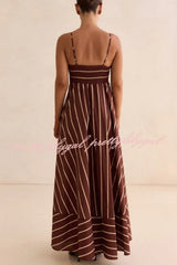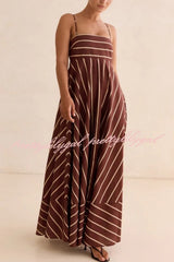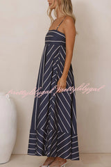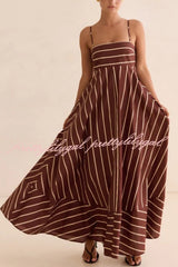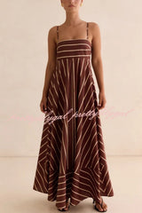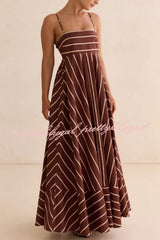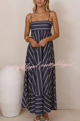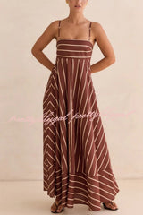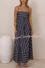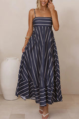 Striped Print Square Neck Spaghetti Strap High Waist Casual Maxi Dress