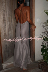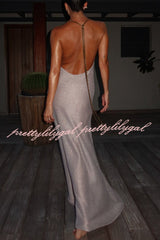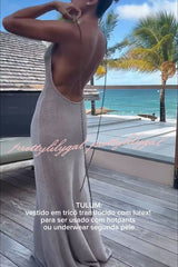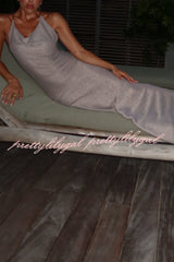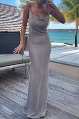 Strolling on The Beach Knit Metallic Fabric Chain Shoulder Strap Backless Maxi Dress