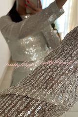 Fashionable Shiny Sequined Long-Sleeved Cropped Top and Casual Wide-Leg Pants Set