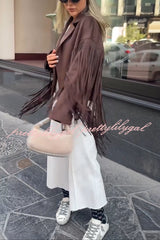 Western City Suede Long Tassels Long Sleeve Lapel Relaxed Jacket