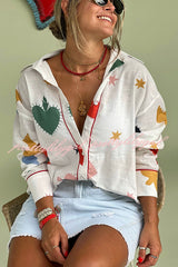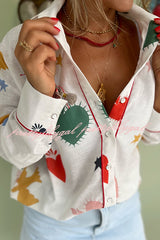- Classic long-sleeved collared shirt featuring a creative themed print. Style this shirt for a glamorous summer look.