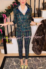 Embrace The Festival Plaid Twist Half Sleeve Shirt and Elastic Waist Pencil Pants Set