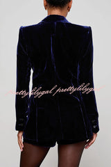 Bold Modern Velvet Contrast Satin Lapel Blazer and High Rise Pocket Shorts Set