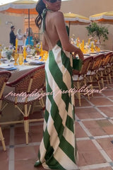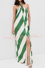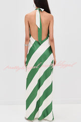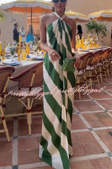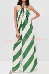 Most Dreamy Stripe Print Halter Tie-up Backless Pocket Loose Maxi Dress