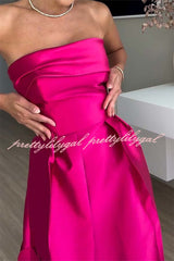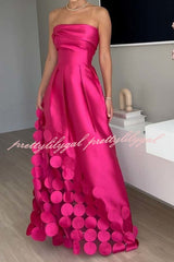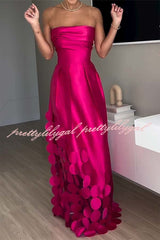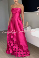 Luxurious Poise Satin Spliced mesh Polka-dot Fabric Off Shoulder Formal Maxi Dress