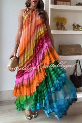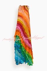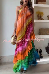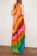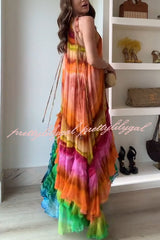 Rosha Georgette Crepe Tie-dye Print Layered Ruffles A-line Maxi Dress
