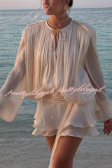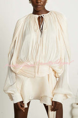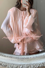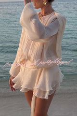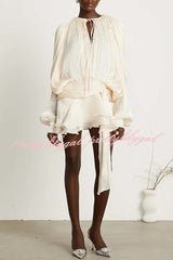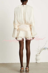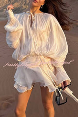 Ninah Glitter Fabric Pleated Balloon Sleeve Tiered Ruffle Hem Mini Dress