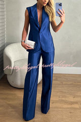 Luxurious Styling Satin Backless Straps Lapel Blazer Vest and Straight Pants Set