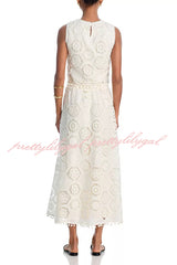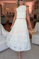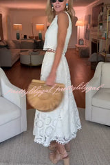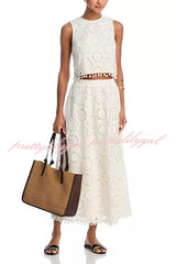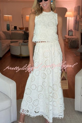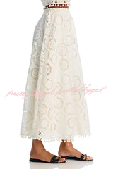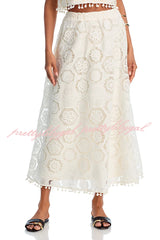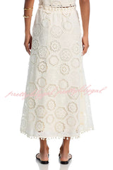 Nice Try Embroidered Crochet Lace Tassle Trim Elastic Waist Midi Skirt