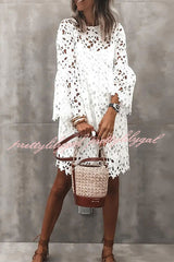Pretty Presence Floral Crochet Lace Bell Sleeve Mini Dress