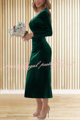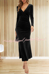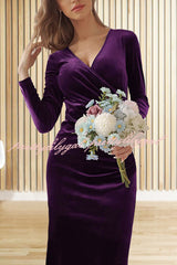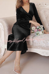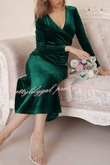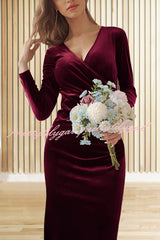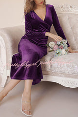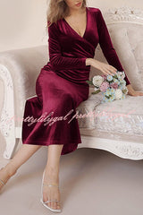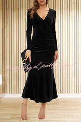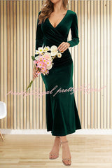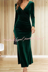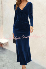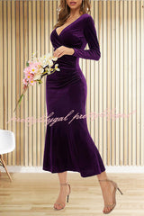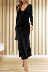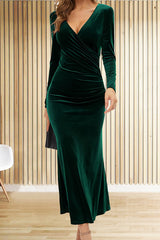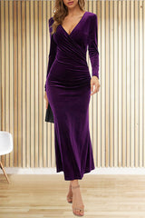 Solid Color Velvet Long Sleeve V-neck Slim Fit Fishtail Maxi Dress