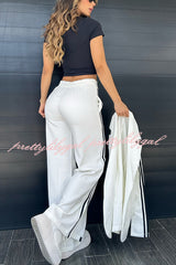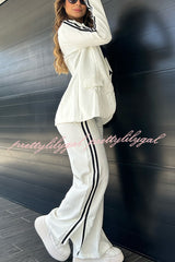 Sporty Mixed Formal Striped Trim Lapel Blazer and Elastic Waist Pocket Loose Pants Set