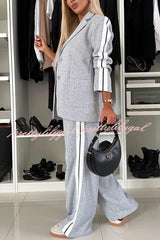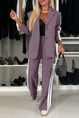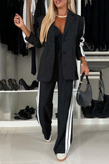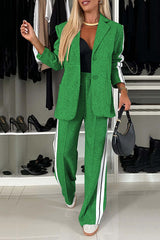 Bold Claim Sporty Patchwork Lapel Blazer and Elastic Waist Pocket Loose Pants Set