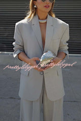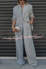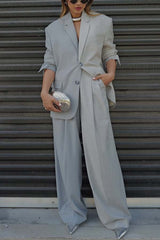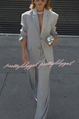 Girl Boss Avant-garde Contrast Colors Lapel Boyfriend Blazer and Pocketed Wide Leg Pants Set