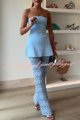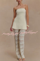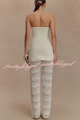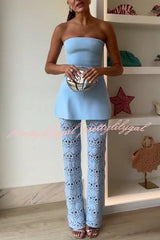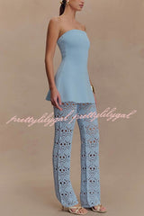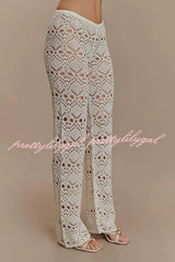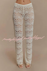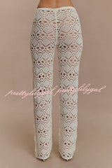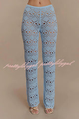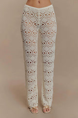 - The TRENA Crochet Knit Pants blend laid-back charm with elevated texture. Crafted in a soft crochet knit, this straight-leg silhouette sits mid-rise with an elastic waistband for all-day comfort. Unlined for a breezy, lightweight feel, these pants are perfect for layering over swim or pairing with matching crochet pieces for a sun-kissed resort look.