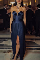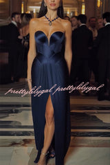 Stunning The Audience Plissé Satin Off Shoulder Drape Slit Gown Maxi Dress