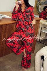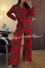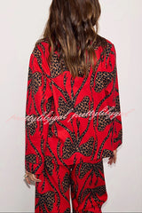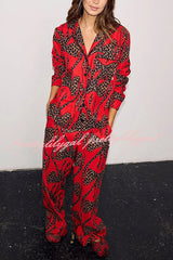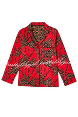 Stylish Colorblock Leopard Print Loose Shirt and Elastic Waist Pocketed Pajama Set
